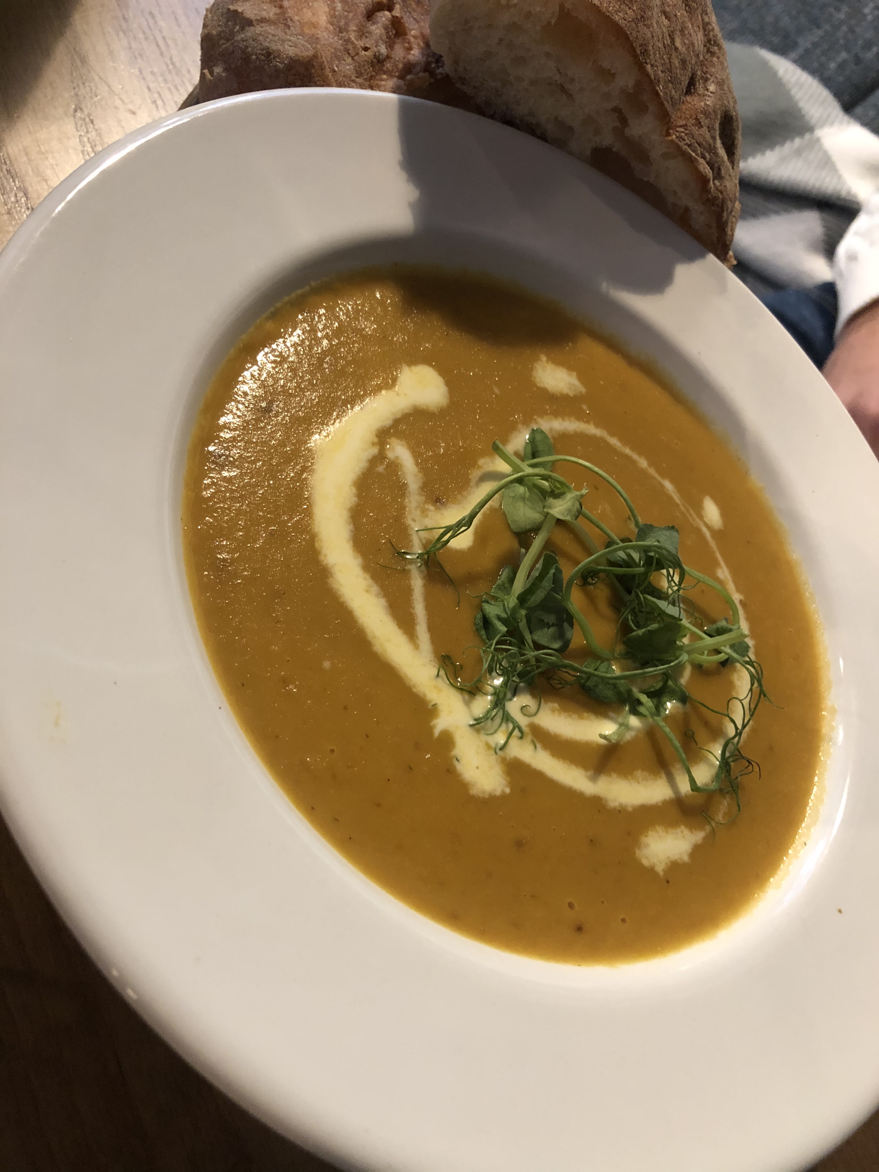 India went for the homemade soup. The Roast Lancashire Carrot and Fennel flavours were another winner, seasoned perfectly. The bread wasn’t really brace friendly. but dipped in the soup to soften it certainly worked as she finished the lot.