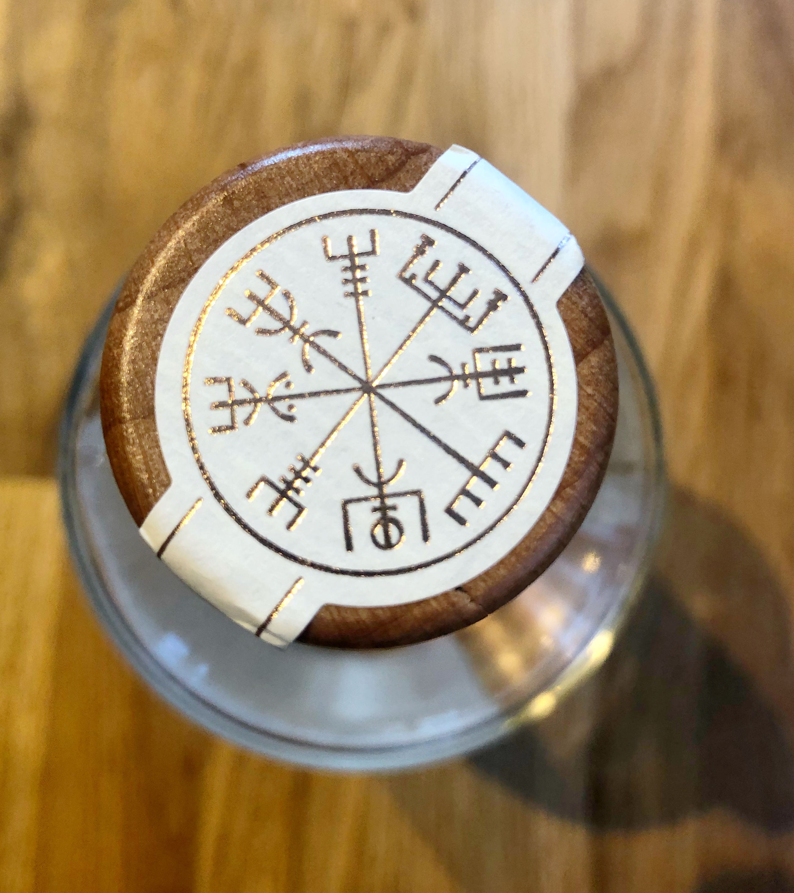The bottle is simple in style with a wooden stopper which seems fitting as a gin that has its roots in the ancient past. The ancient influence continues on the top with the design being of a Vegvisir, a Viking compass that helped the Norsemen navigate.