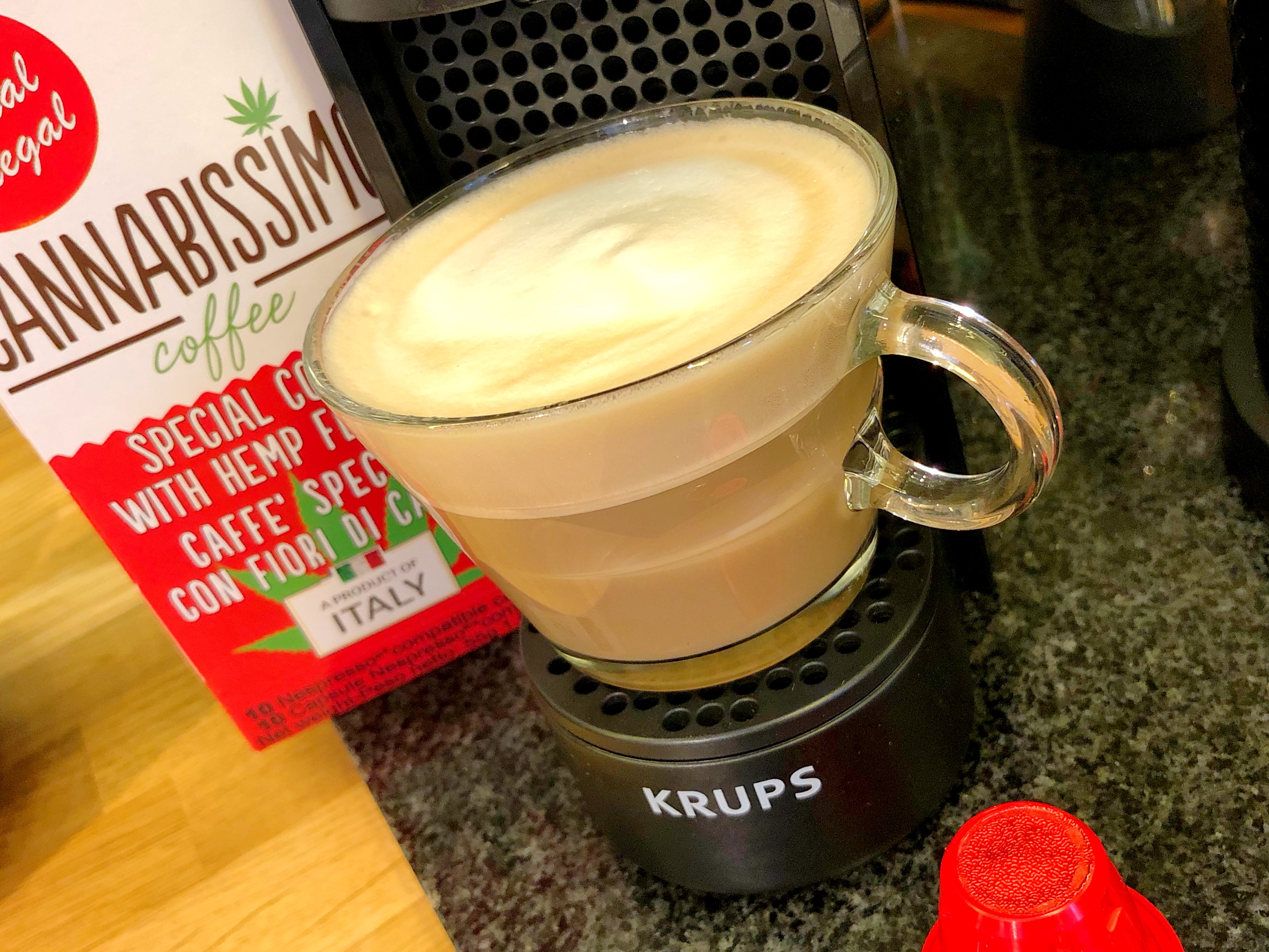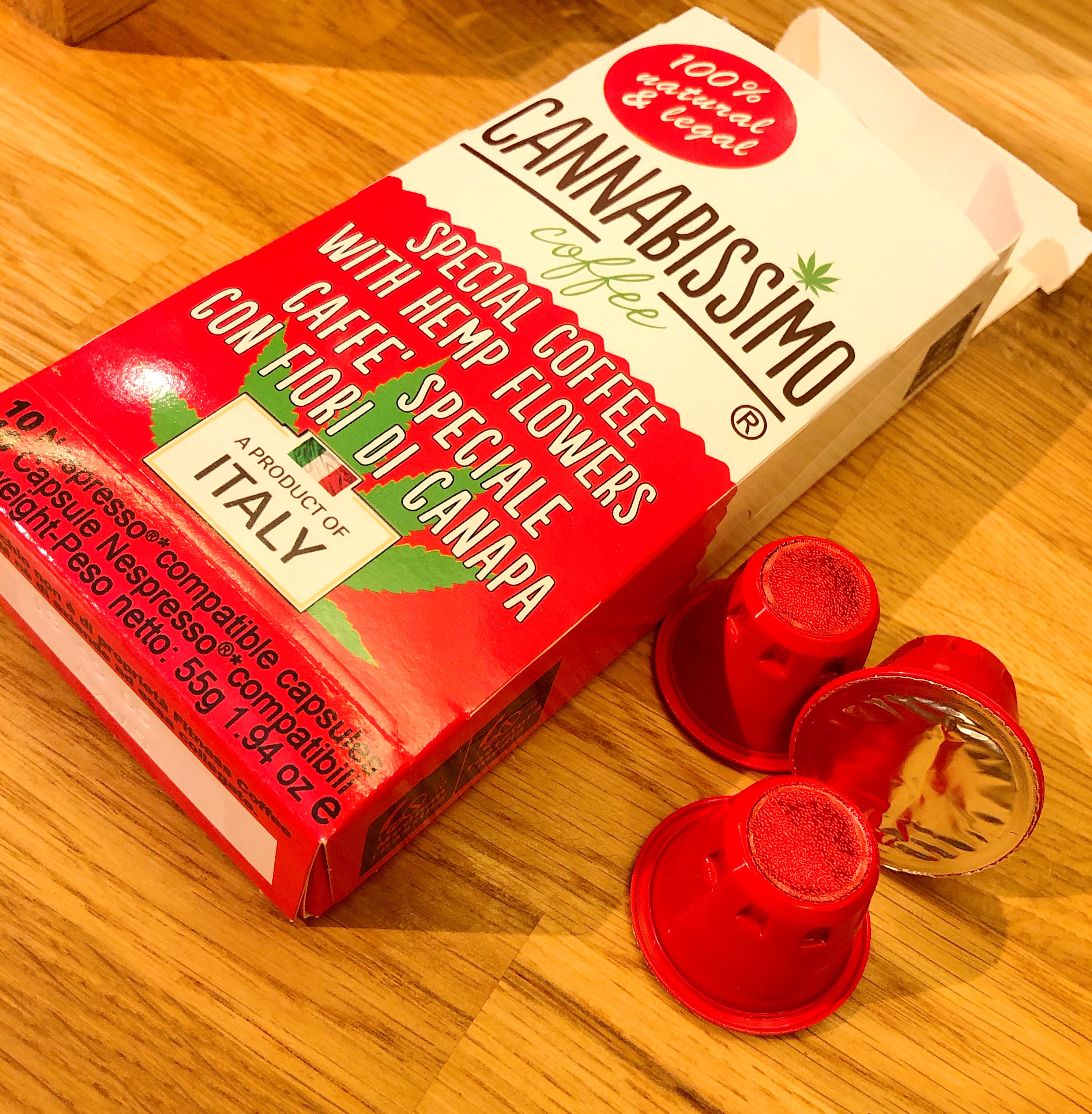 Canabissimo is produced in Italy and marketed in the UK by Mighty Green Coffee Direct, containing 92% coffee and 8% Natural Hemp, creating a content of 5% CBD.