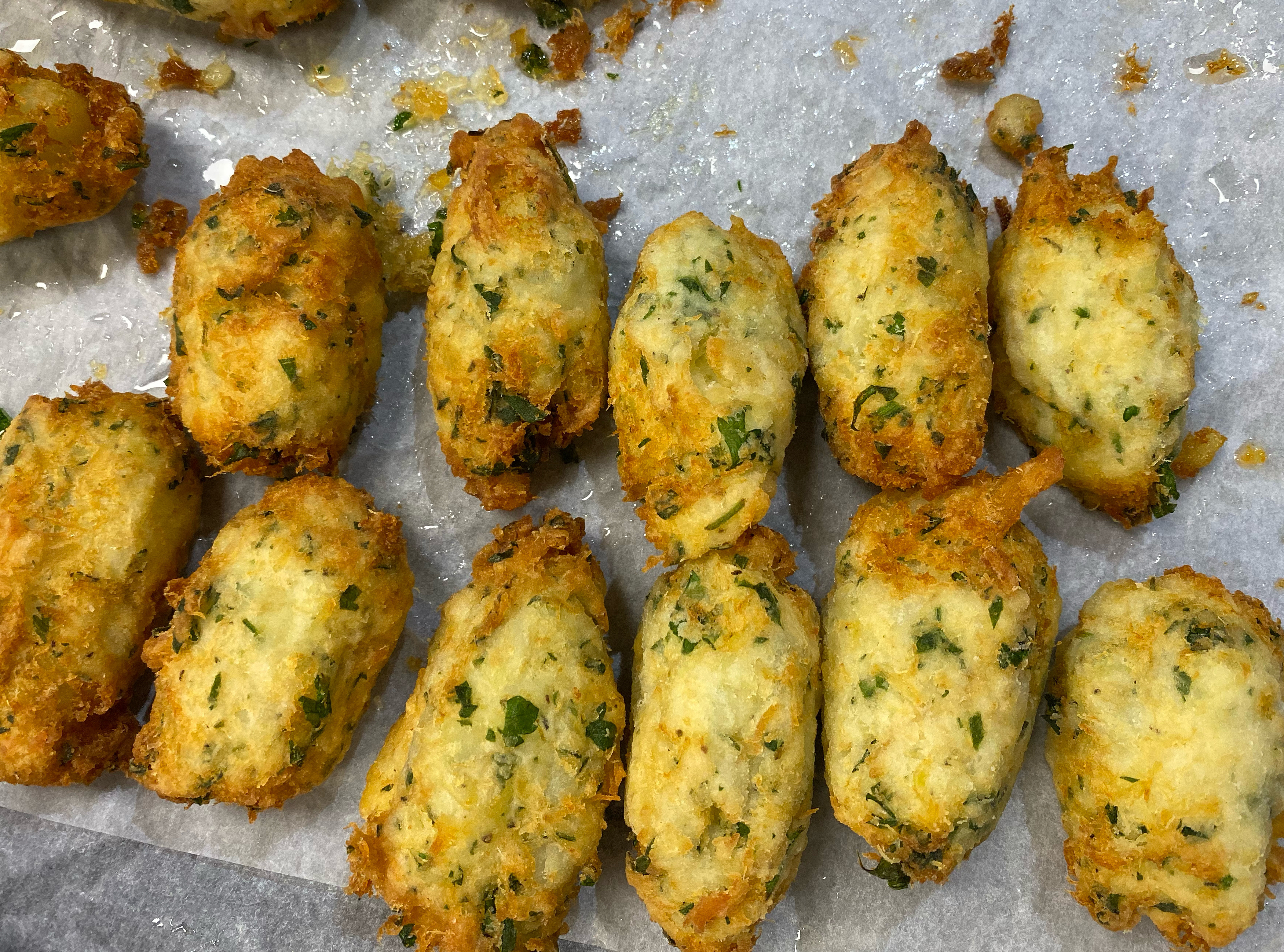 During this time, we were also able to shape the salted cod and potato into quenelles, ready to be fried later.