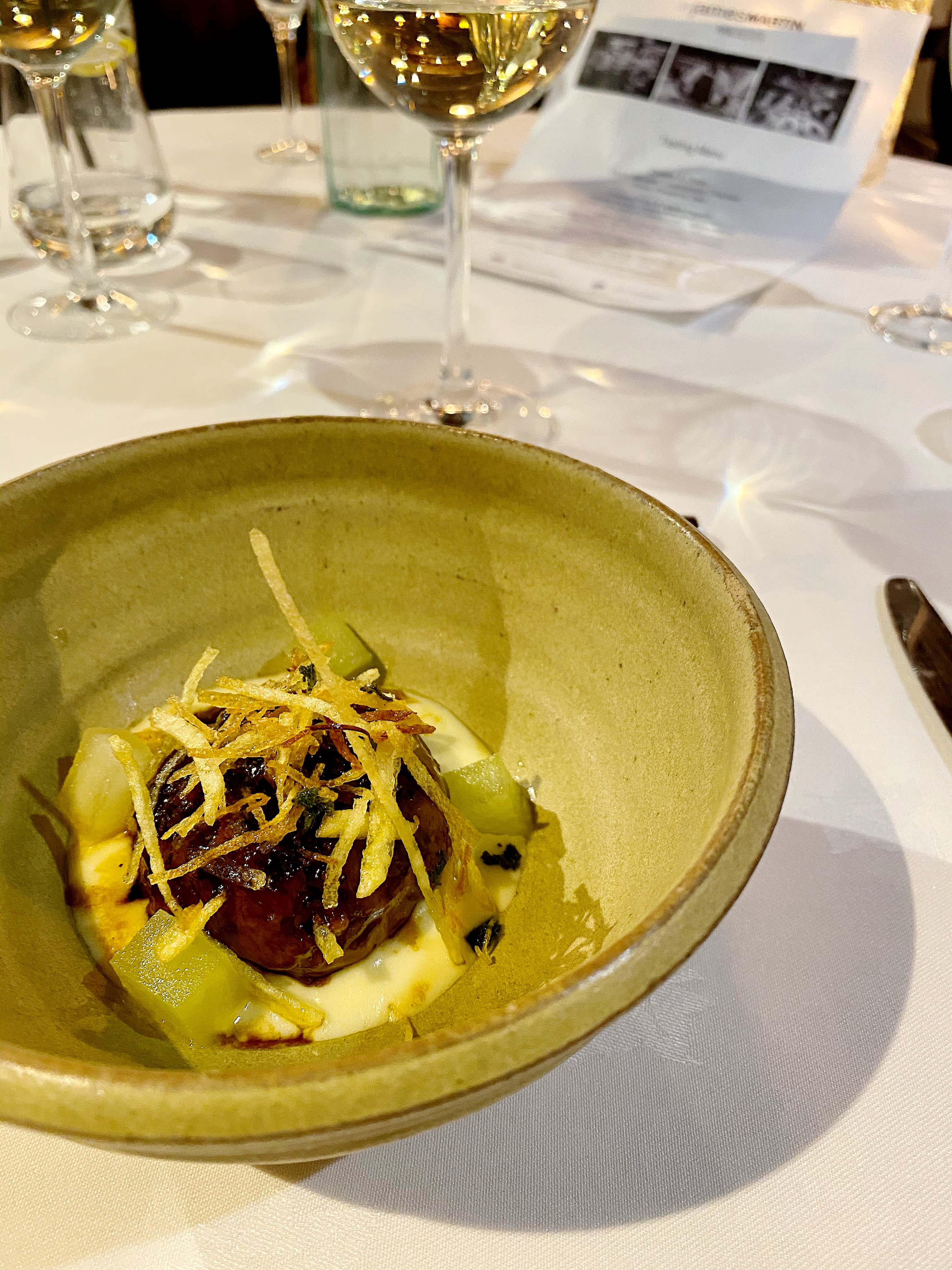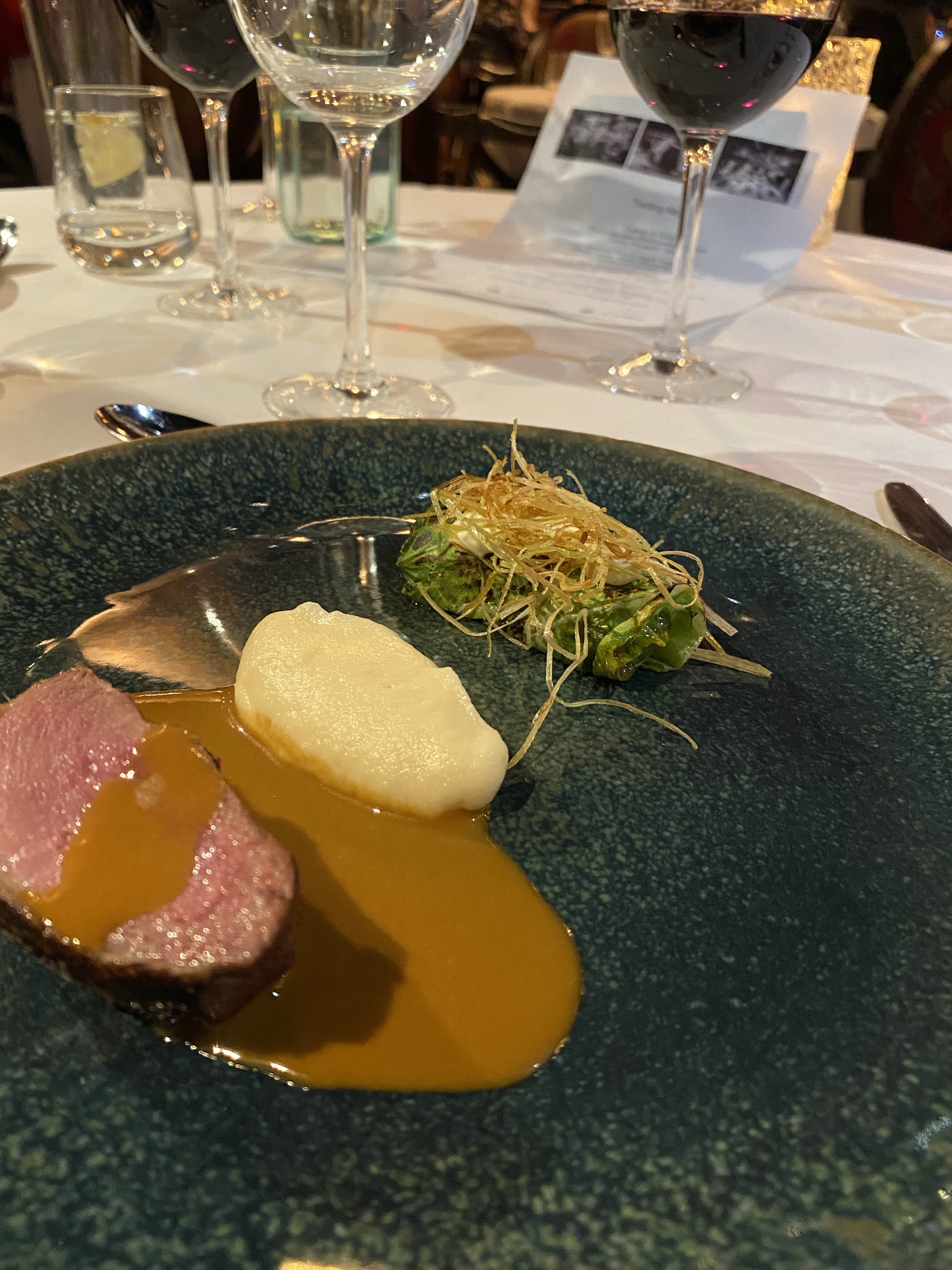 The matching South African Chardonnay is drinkable at best, but I keep reminding myself that we are paying just £30 a head for the menu and the drinks in total, so my expectations should be set accordingly.