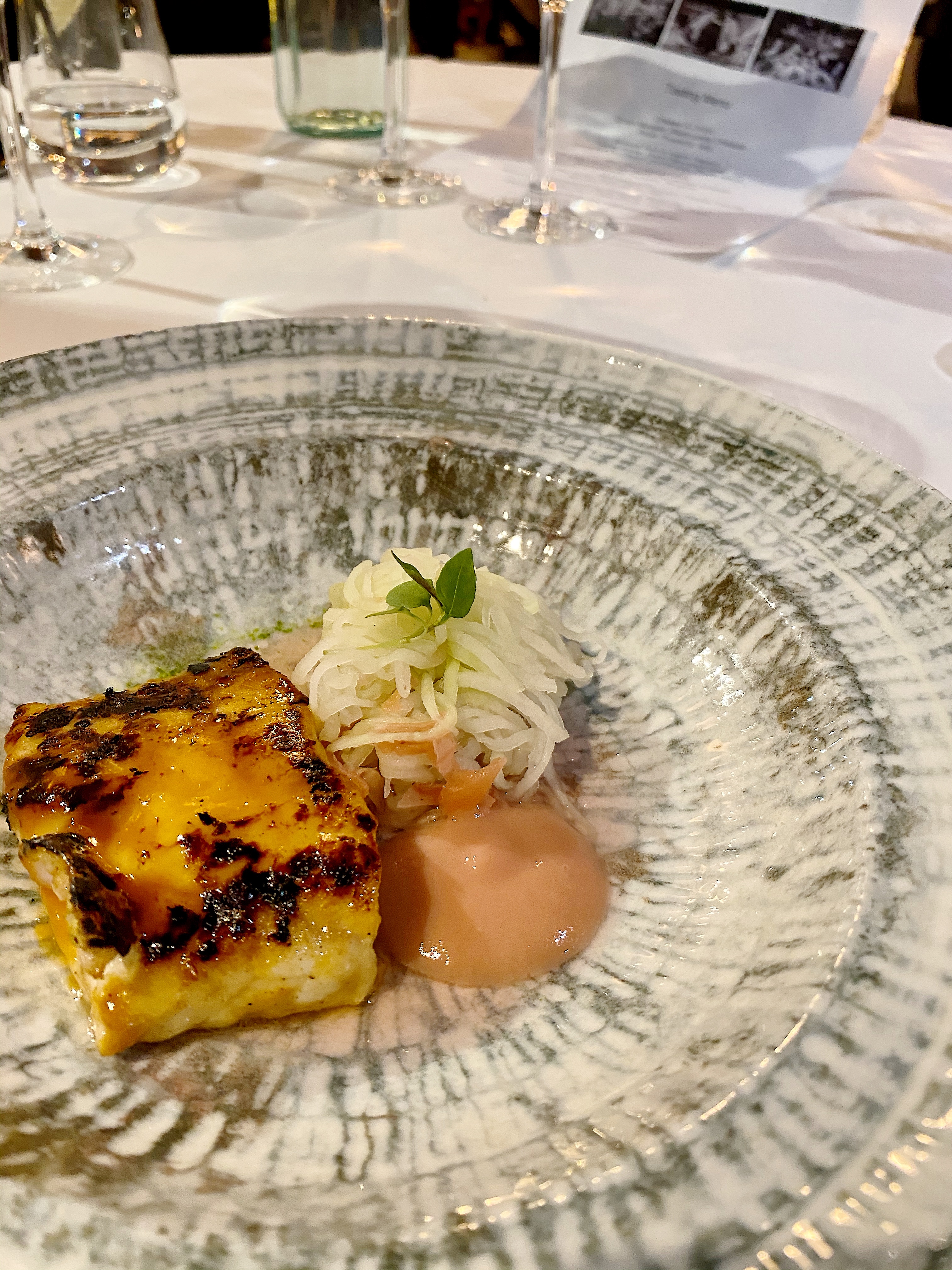 Courses continue to come, however it appears servers are just grabbing whatever table number comes next when at the pass, with no consistency of who was serving us – this was most evident at dessert, when one server asked if we were ready or if we wanted a short break, despite saying we would like a short break, someone else still bought us the course 2 mins later, which meant the accompanying wine course was missed until after we have eaten it.