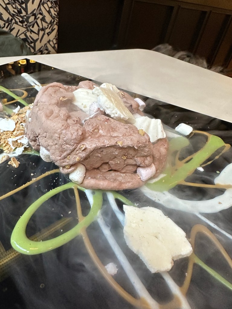 Finally I ordered a dessert, despite being full, I just needed to check out the chocolate mousse dish from São Paulo Bistrô. made with local chocolate producer Dormouse chocolate, the dish is frozen using liquid nitrogen and served on swirls of caramel sauce, basil custard and coconut yoghurt.