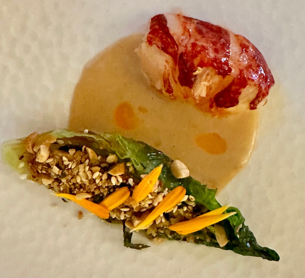Dishes continued to impress, with Smoked Eel on a tapioca cracker, this was a positive slap in the face of flavour, that I wasn’t expecting, but loved.