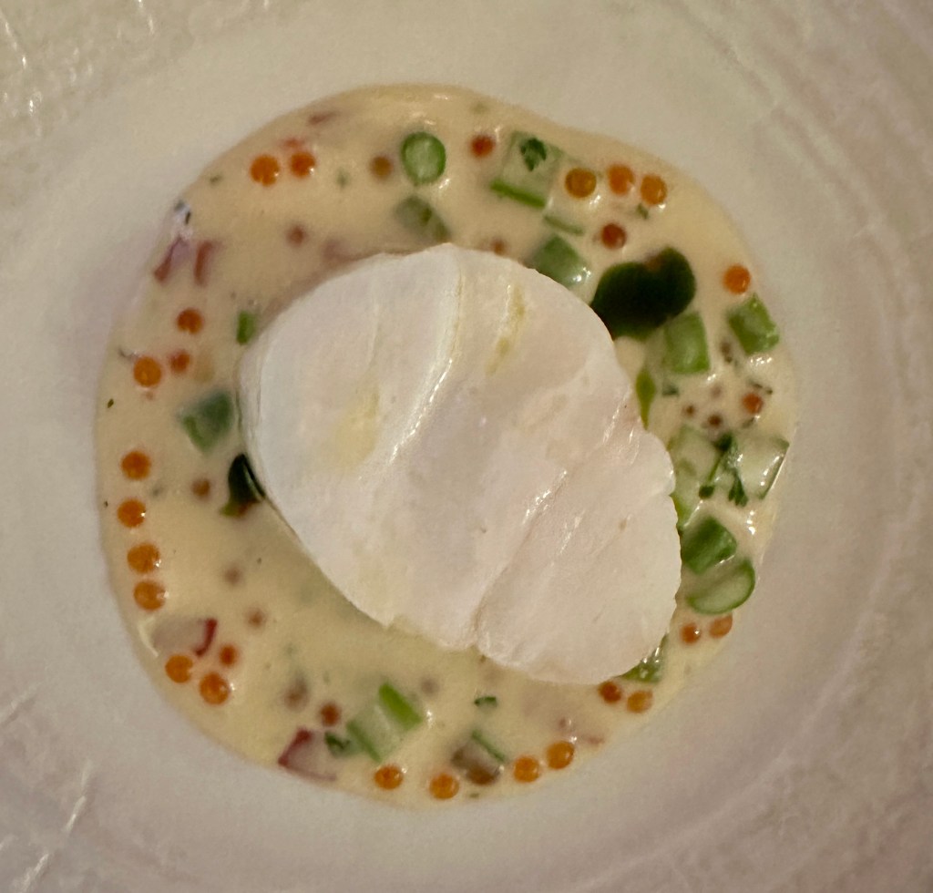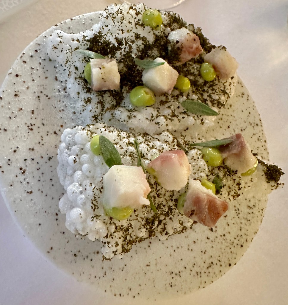 More delights kept coming, including some tender cod loin, on a broth of almond, asparagus, roe and jamon.