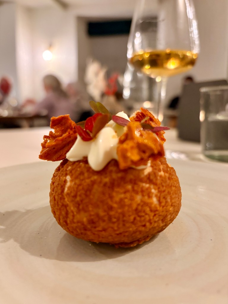 At £95, the wine pairing felt like an investment — but one that paid off. It introduced me to a range of wines I’d probably never have ordered myself whilst dining, even with my WSET background. It included a fresh Sicilian white and that sharp, natural Greek rosé. On its own, the latter was a little too acidic for my taste, but paired with the sea bream and tomato course, it transformed beautifully.
