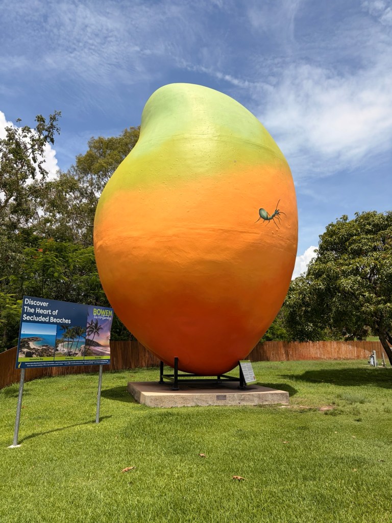 We stopped at one of Australia’s great roadside icons — the Big Mango near Bowen. Loud, kitsch and impossible to ignore, it celebrates the region’s mango-growing heritage and demands a quick photo stop.